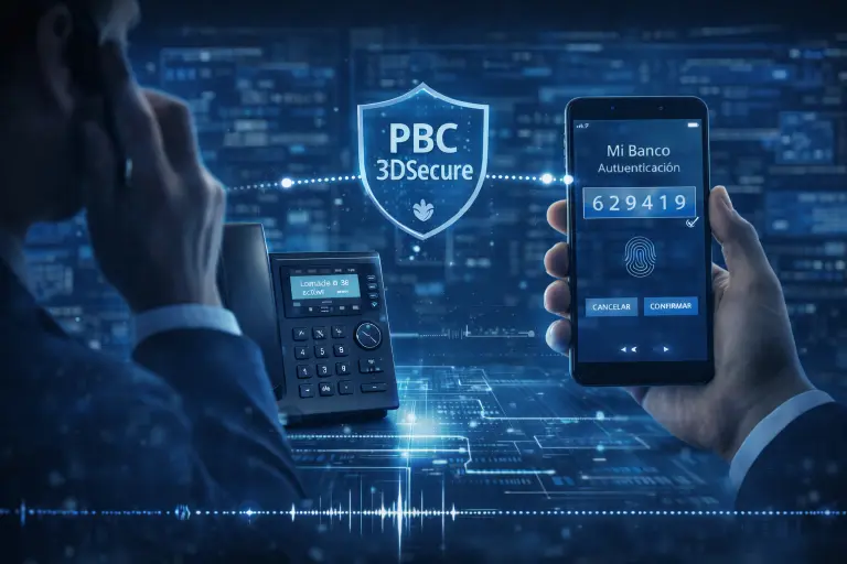 PBC 3DS es la capa opcional de autenticación reforzada de Pay by Call que permite llevar PSD2 / 3D Secure 2.x al canal telefónico sin obligar al usuario a abandonar la llamada. Durante el proceso, los datos de tarjeta se capturan dentro del entorno IVR seguro, la plataforma se comunica con el ecosistema 3DS a través del PSP integrado y el usuario valida la autenticación en el canal habitual definido por su banco emisor, como app bancaria, SMS OTP o notificación push. Mientras tanto, la llamada permanece activa y el sistema informa del estado hasta completar la autorización.