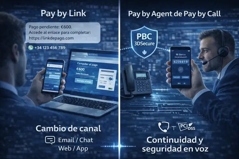 La conclusión estratégica es clara: Pay by Link es un excelente complemento para flujos nativamente digitales, pero cuando el pago nace en una llamada y el objetivo es maximizar conversión, control y continuidad, Pay by Agent ofrece una experiencia más coherente con el propio canal. Y cuando se activa PBC 3DS, esa experiencia puede además alinearse con la autenticación reforzada PSD2 / 3D Secure sin sacar al usuario de la llamada.