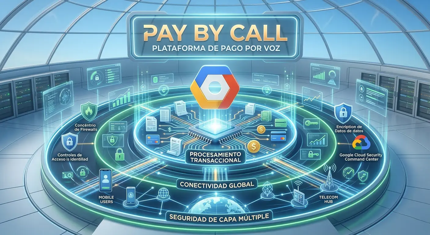 Pay by Call opera sobre una arquitectura cloud native desplegada en Google Cloud Platform, con alta disponibilidad 99,99%, diseñada para crecer sin fricciones, reducir riesgos ligados a infraestructura física y absorber picos de volumen sin necesidad de hardware local complejo Este enfoque permite combinar escalabilidad, resiliencia operativa, expansión internacional y eficiencia de costes en entornos donde la continuidad de servicio es crítica.
