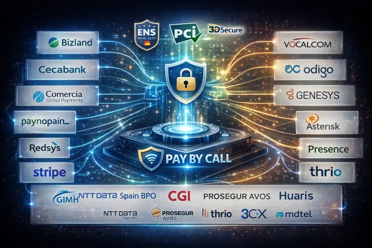 Uno de los pilares de la plataforma es su capacidad de integrarse con el PSP, la centralita, el CCaaS o el BPO que el cliente ya utiliza. Pay by Call no sustituye la arquitectura existente: añade la capa especializada de pago IVR seguro, reduciendo fricción técnica y acelerando la implantación.
